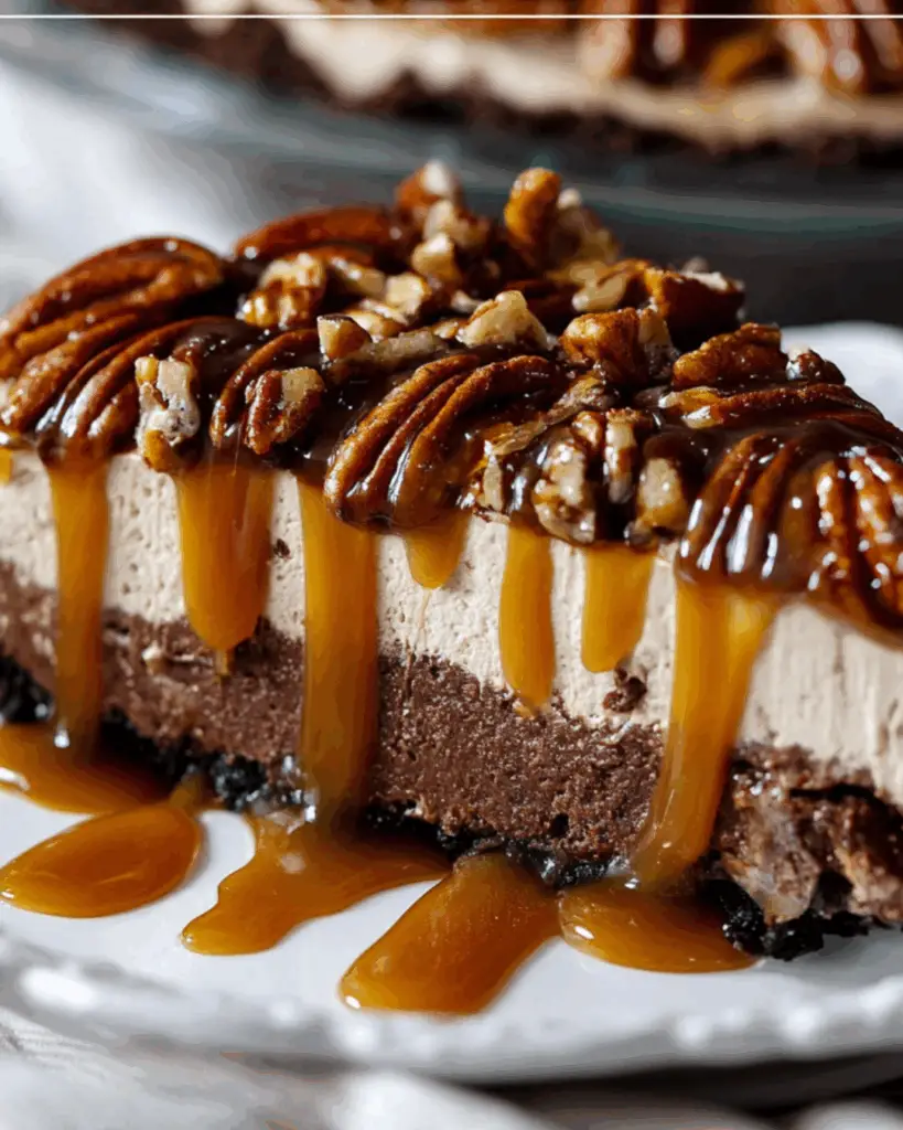A delicious and easy No-Bake Turtle Pie featuring layers of chocolate, caramel, and pecans, perfect for any occasion.