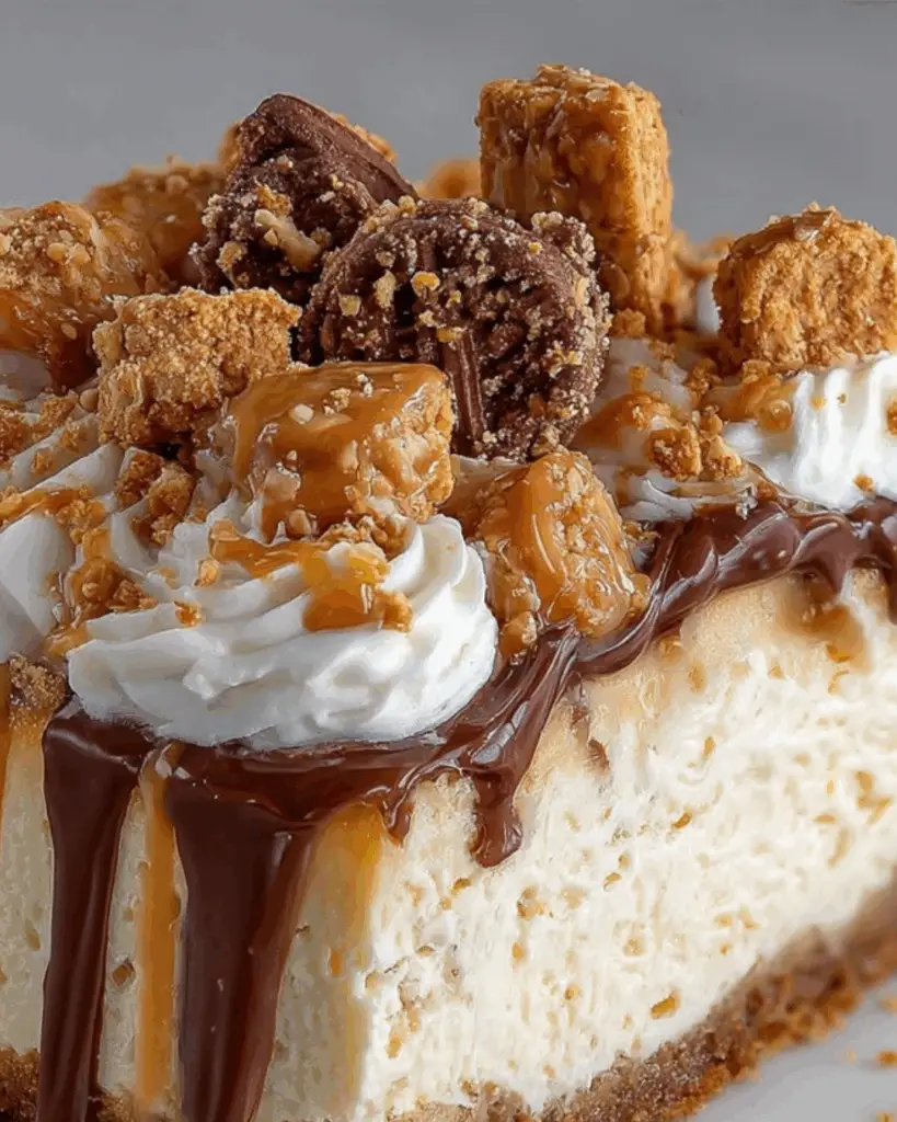 A rich and creamy cheesecake made with Nutter Butter cookies, perfect for dessert lovers.
