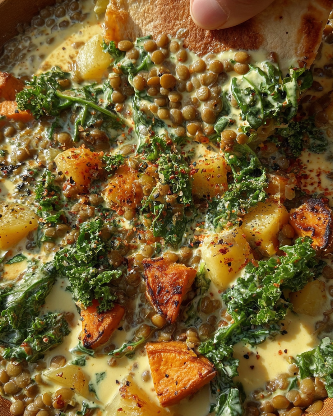 PrintOne Pan Creamy Lentils, Japanese Sweet Potatoes, + Kale Delight Your Taste Buds Today!