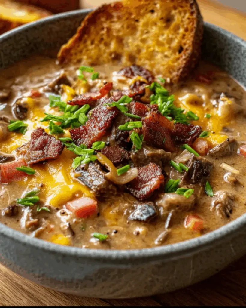 Why You’ll Love This One-Pot Philly Cheesesteak Soup with Bacon and Cheesy Toast