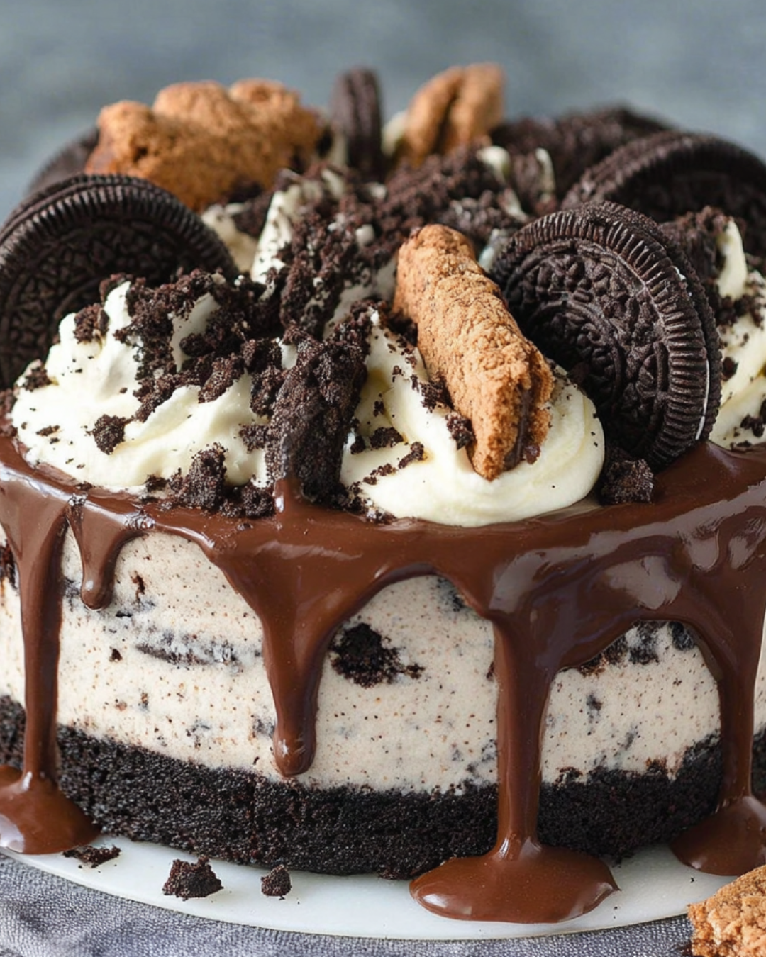 - Before serving, let the cake sit at room temperature for about 10 minutes to soften slightly. Garnish with extra Oreo cookies if desired.