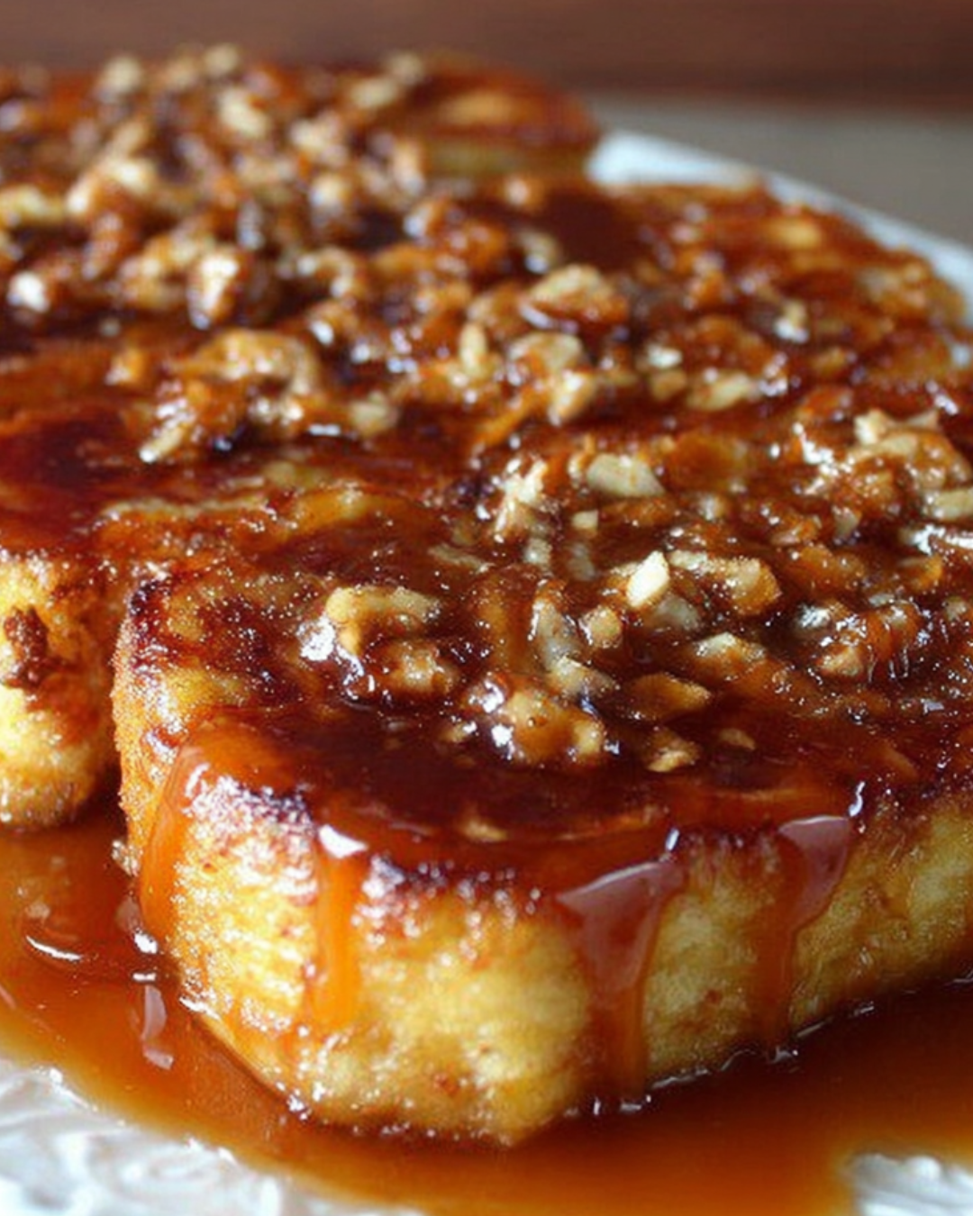 Each bite will be a delightful combination of caramel, nuts, and that soft, custardy bread.