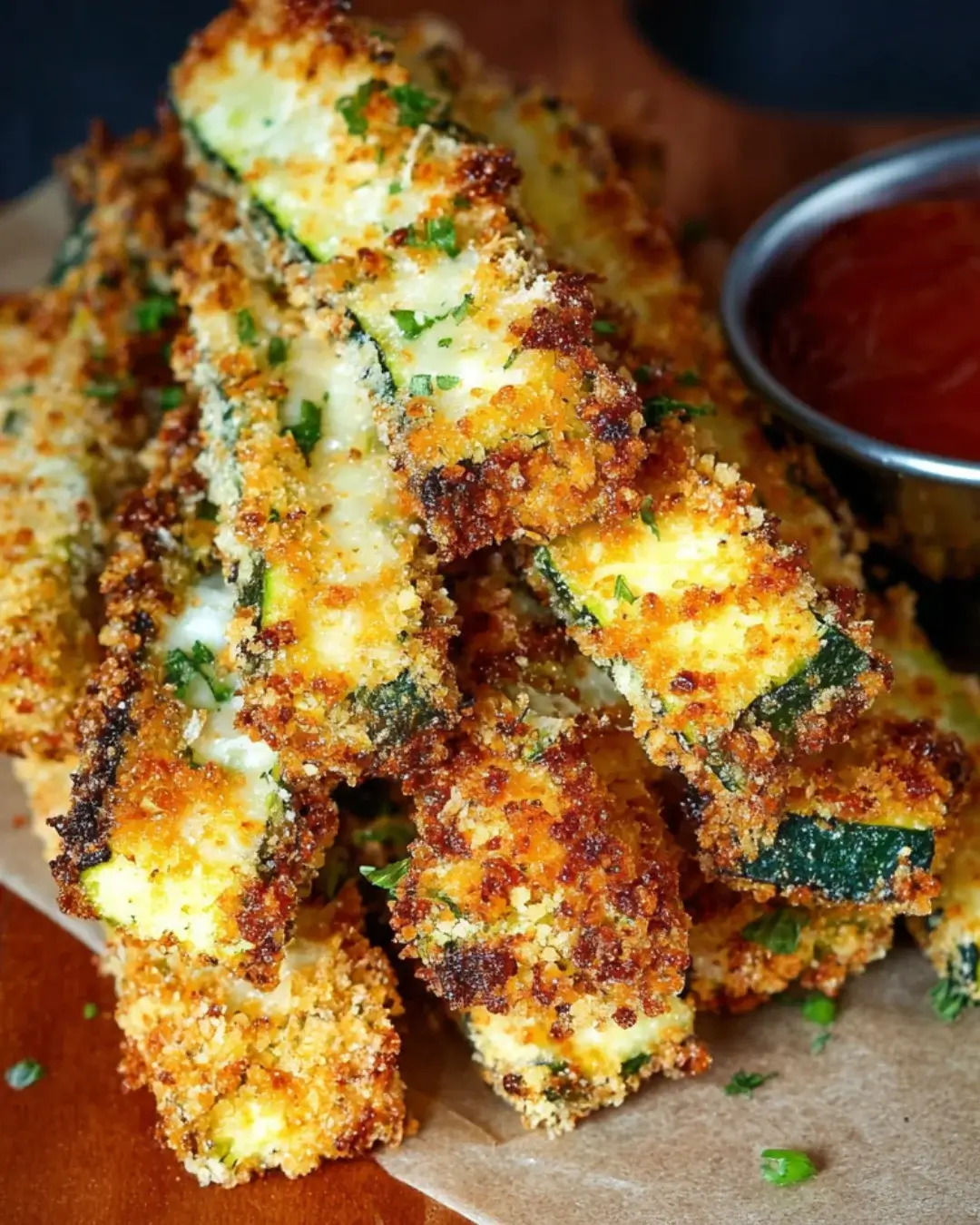 Panko-Parmesan Crusted Zucchini Fries are a crispy and delicious snack or side dish, perfect for any occasion.
