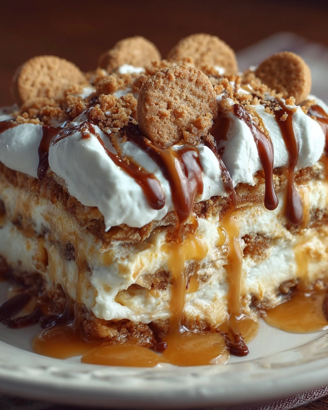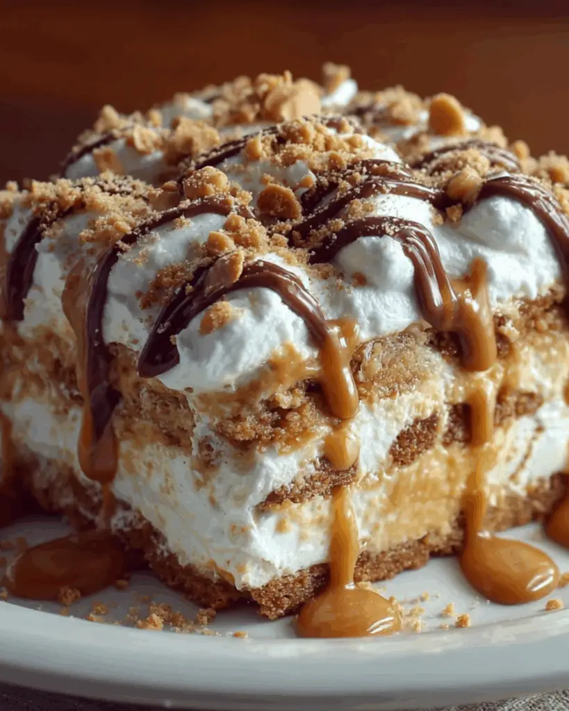 PrintPeanut Butter Cookie Lasagna: Indulge in This Delightful Dessert!