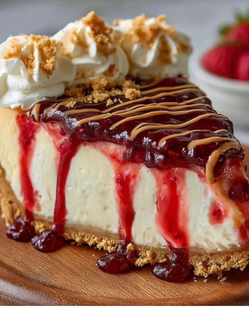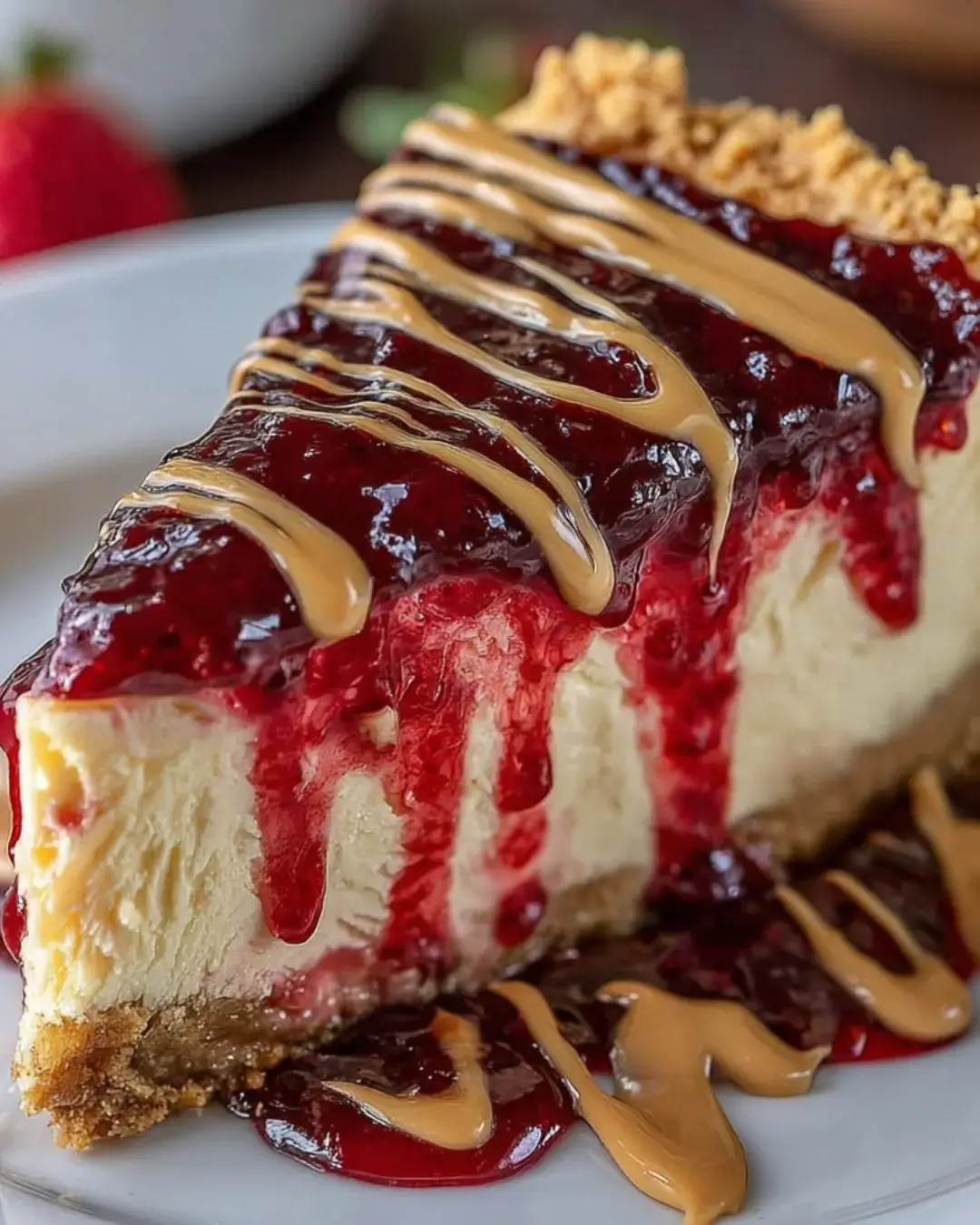 A delicious and creamy Peanut Butter and Jelly Cheesecake that combines the classic flavors of peanut butter and jelly in a rich dessert.