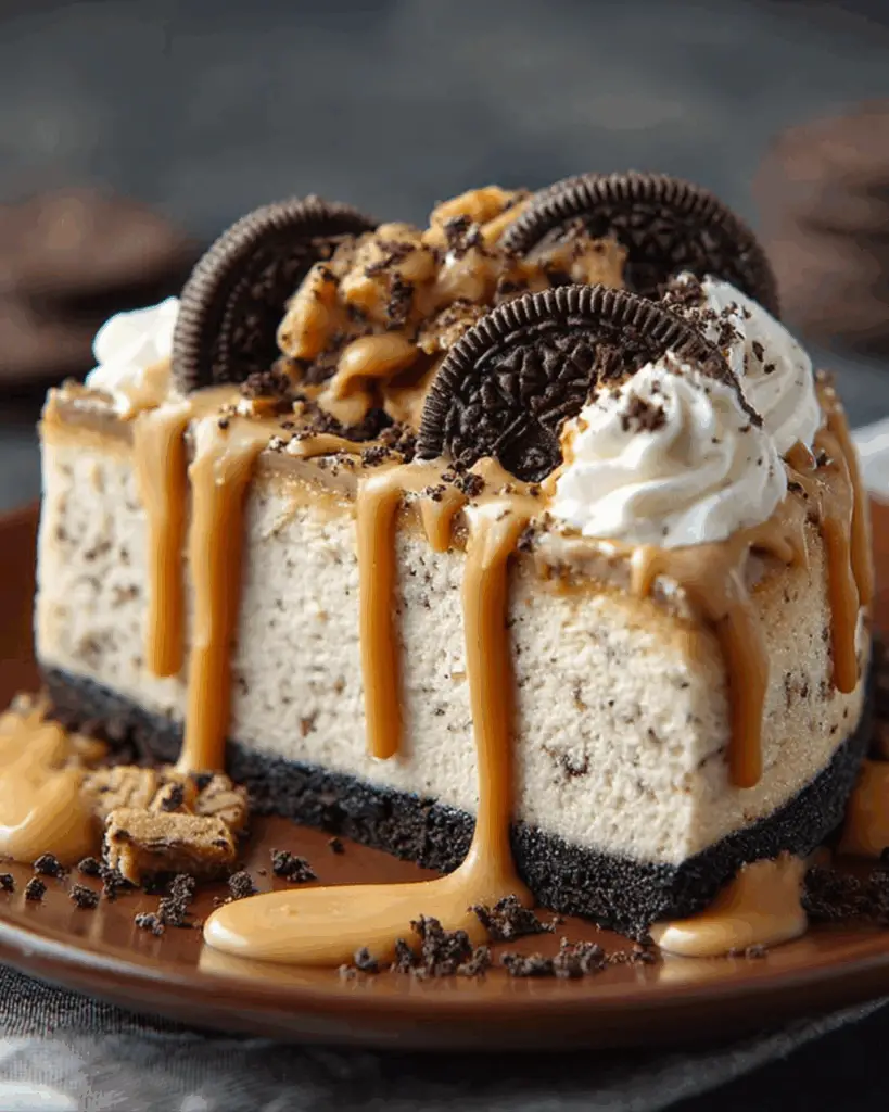 A rich and creamy Peanut Butter Oreo Cheesecake that combines the flavors of peanut butter and Oreo cookies for a decadent dessert.