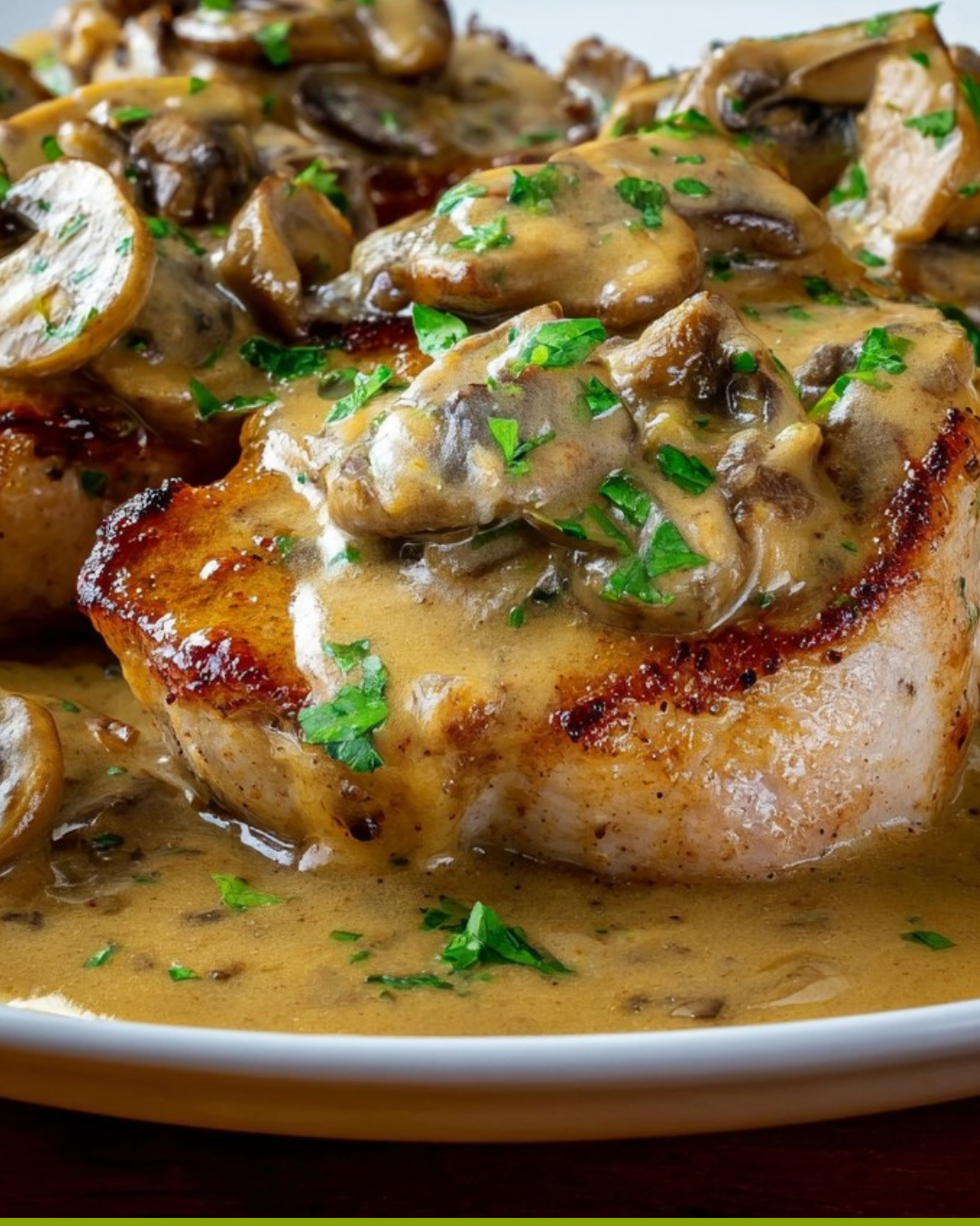 Finally, it’s time to serve! Place the pork chops on plates and generously spoon the garlic mushroom sauce over them. A sprinkle of fresh parsley adds a lovely touch of color and freshness. Enjoy your meal, and watch your loved ones savor every bite!