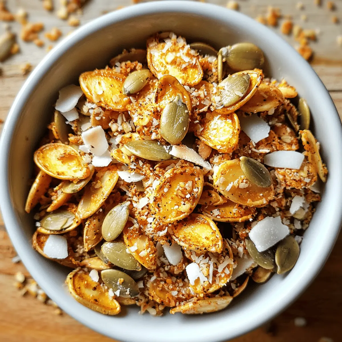 As the golden hues of autumn begin to fill the air, I can’t help but think of a satisfying crunch that captures the season’s warmth—enter my Crunchy Pumpkin Seed and Coconut Clusters! These delightful bites pair the nutty goodness of pumpkin seeds with the toasty sweetness of coconut, transforming snack time into a wholesome experience. Not only are they the perfect on-the-go energy booster, but they’re also a guilt-free option to satisfy your sweet tooth. Vegan, gluten-free, and low in histamine, these clusters are versatile enough to suit a variety of dietary preferences. Whether you’re enjoying them straight from the jar or as a topping on yogurt, these delightful morsels promise a delicious way to break free from fast food monotony. Are you ready to discover how to whip up these gorgeous, crunchy treats? Let’s dive in!