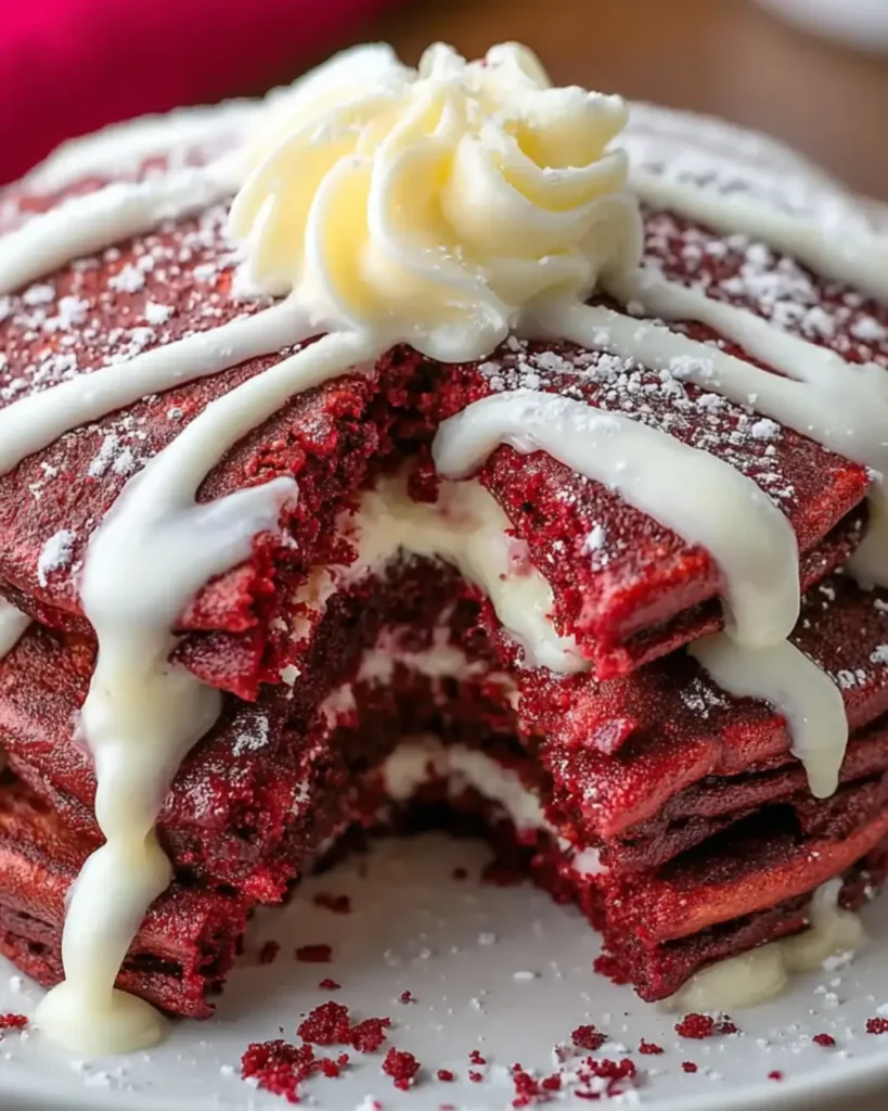 Red Velvet Pancakes with Cream Cheese Glaze are a delicious and visually stunning breakfast treat, perfect for special occasions or a delightful weekend brunch.
