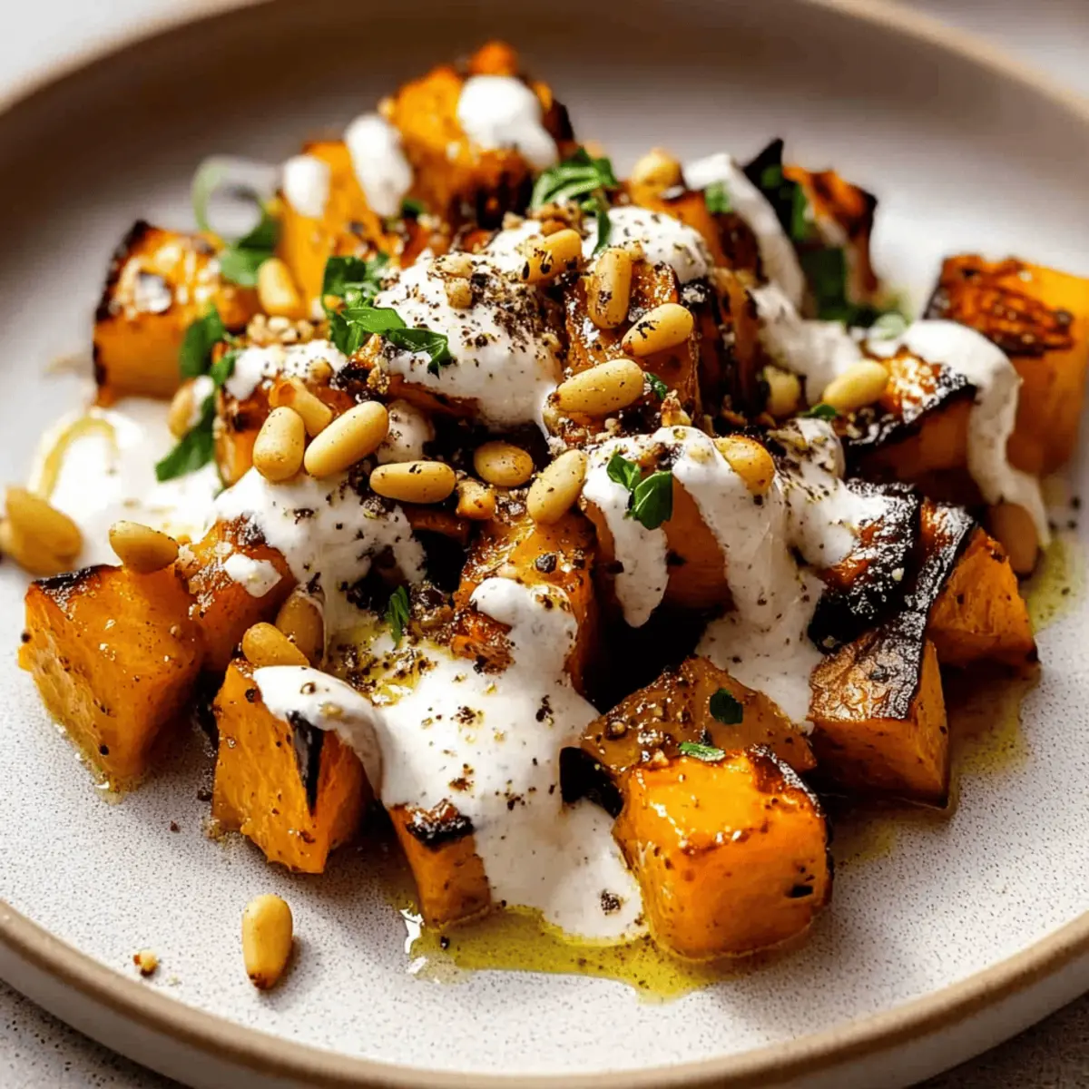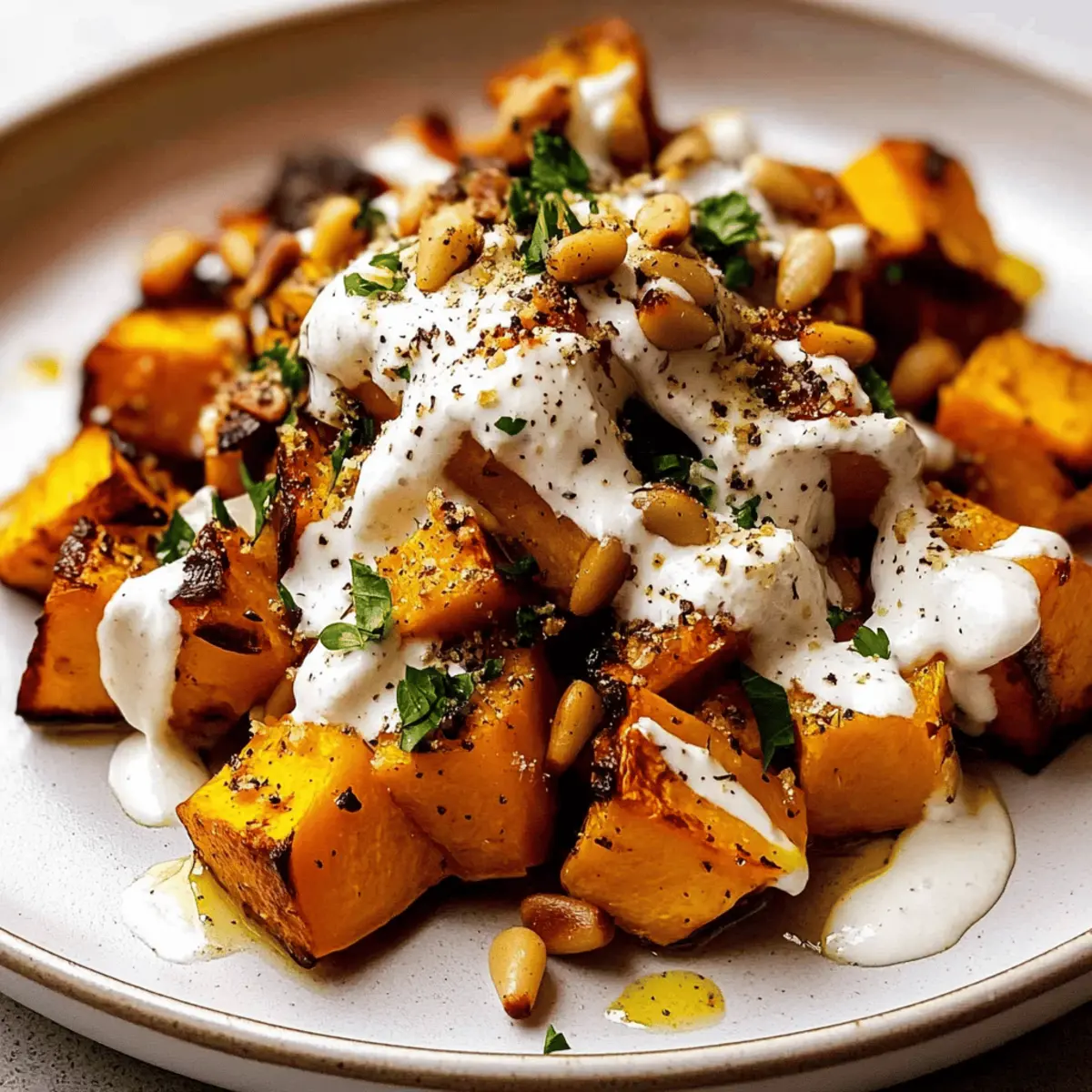 Roasted Pumpkin with Yogurt Sauce and Pine Nuts Delight