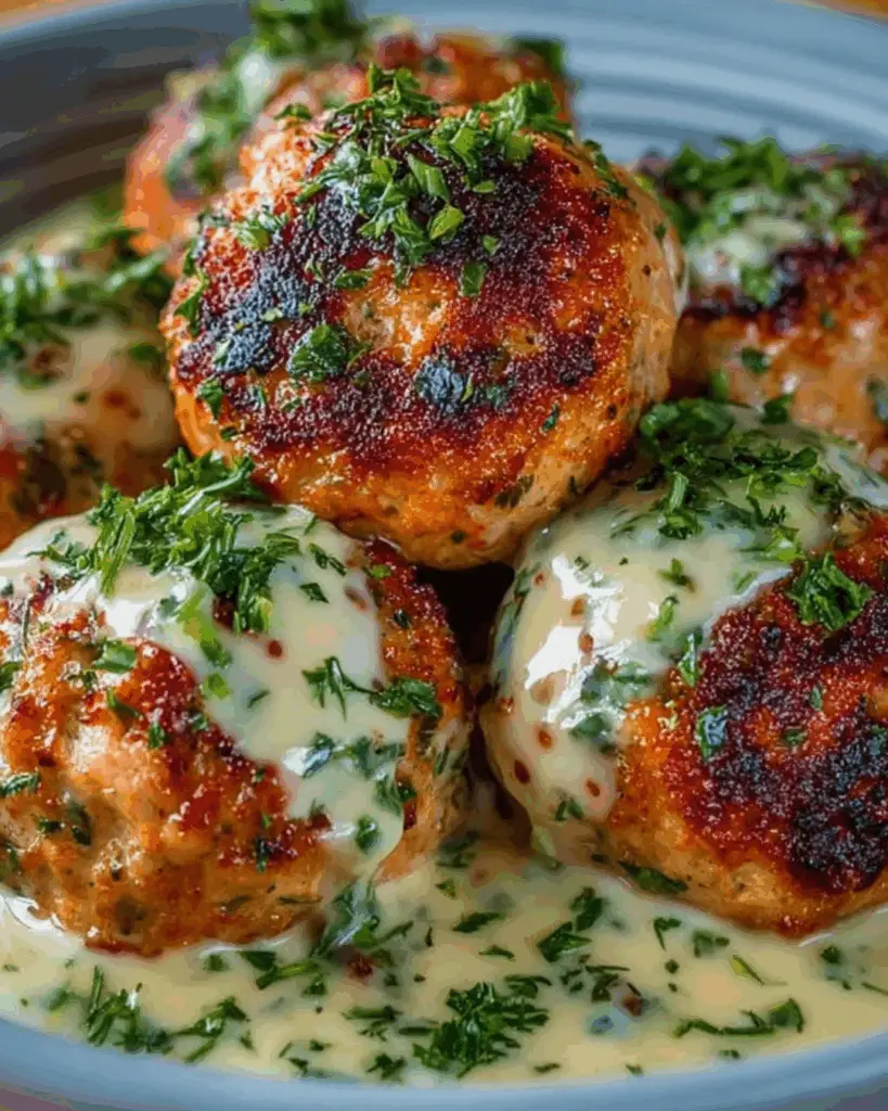 These meatballs pair wonderfully with a fresh salad, whole grain pasta, or even a side of roasted vegetables. The creamy garlic sauce adds a delightful touch to any side dish!