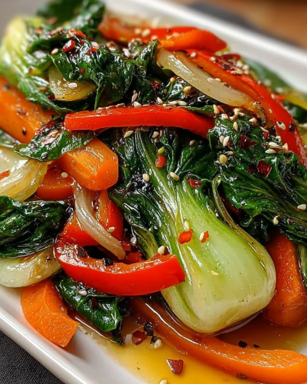 A delicious and healthy sautéed dish featuring bok choy, carrots, and bell peppers, perfect as a side or main dish.