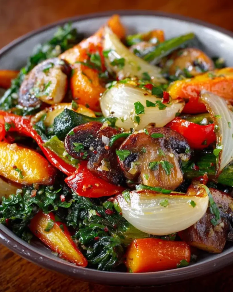 A delicious and healthy dish featuring a variety of sautéed vegetables infused with garlic and herbs.