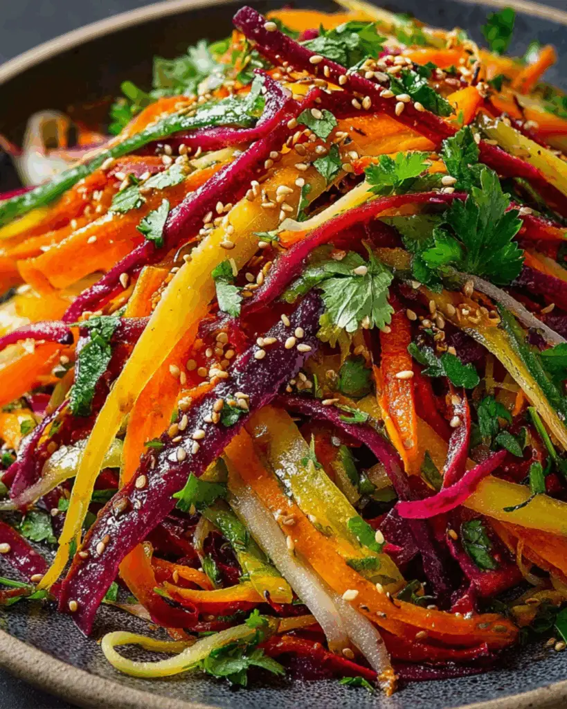 PrintShaved Rainbow Carrot Sesame Salad: A Colorful Delight!