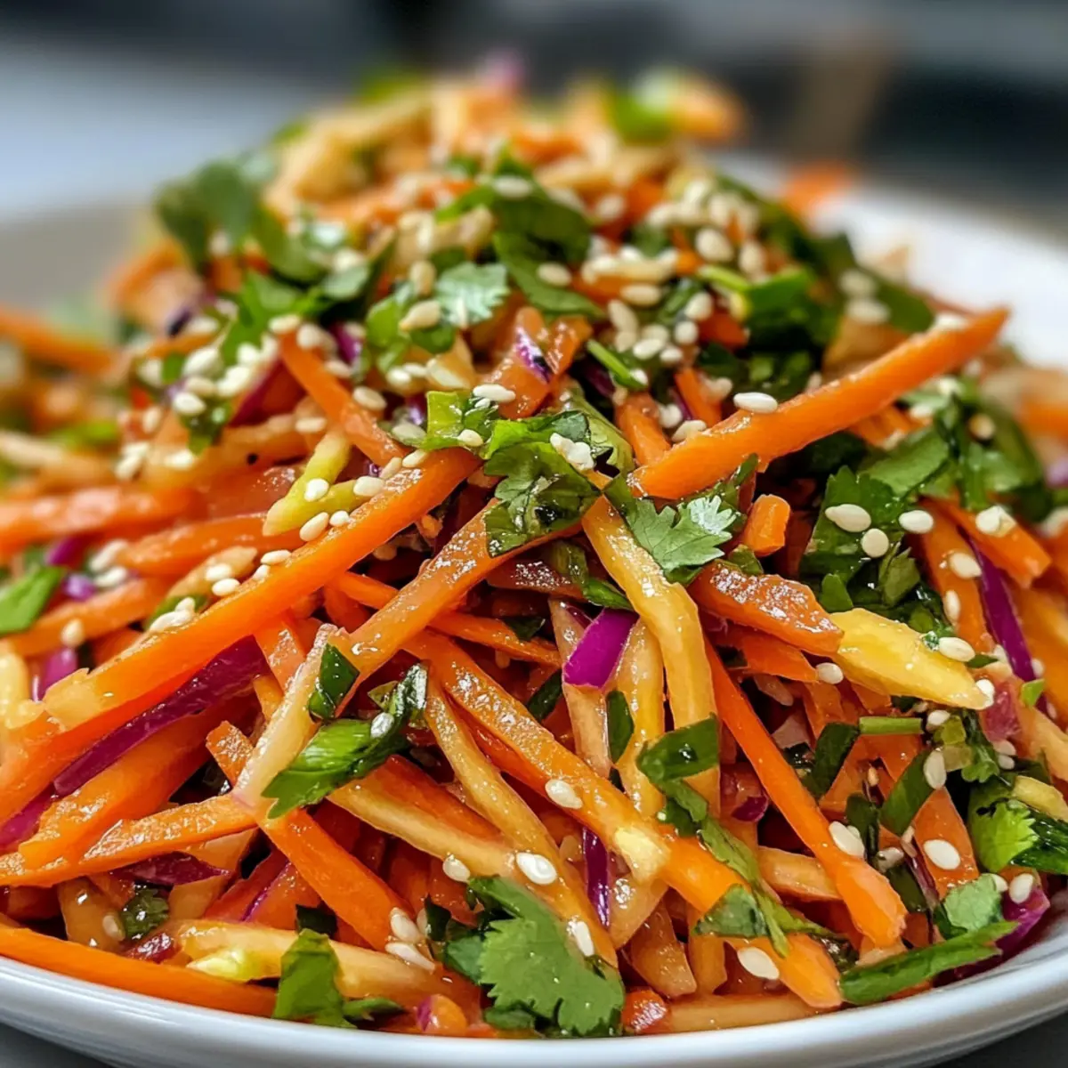 For optimal freshness, store the salad in an airtight container in the refrigerator for up to 3 days. Keep the dressing separate until just before serving to maintain the crunchy texture of the carrots and the vibrant flavors. Be sure to toss everything together lightly before serving for the best taste!