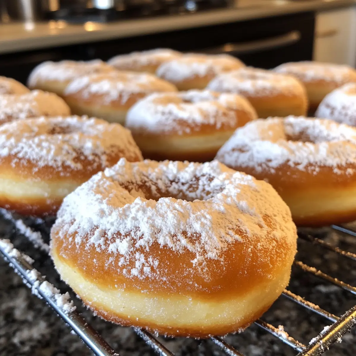 I often recommend using a deep bowl for the powdered sugar coating! This not only minimizes mess but also allows you to submerge the donuts completely, ensuring that they’re evenly covered with that delightful snowy finish. Just remember to let them cool completely before coating!