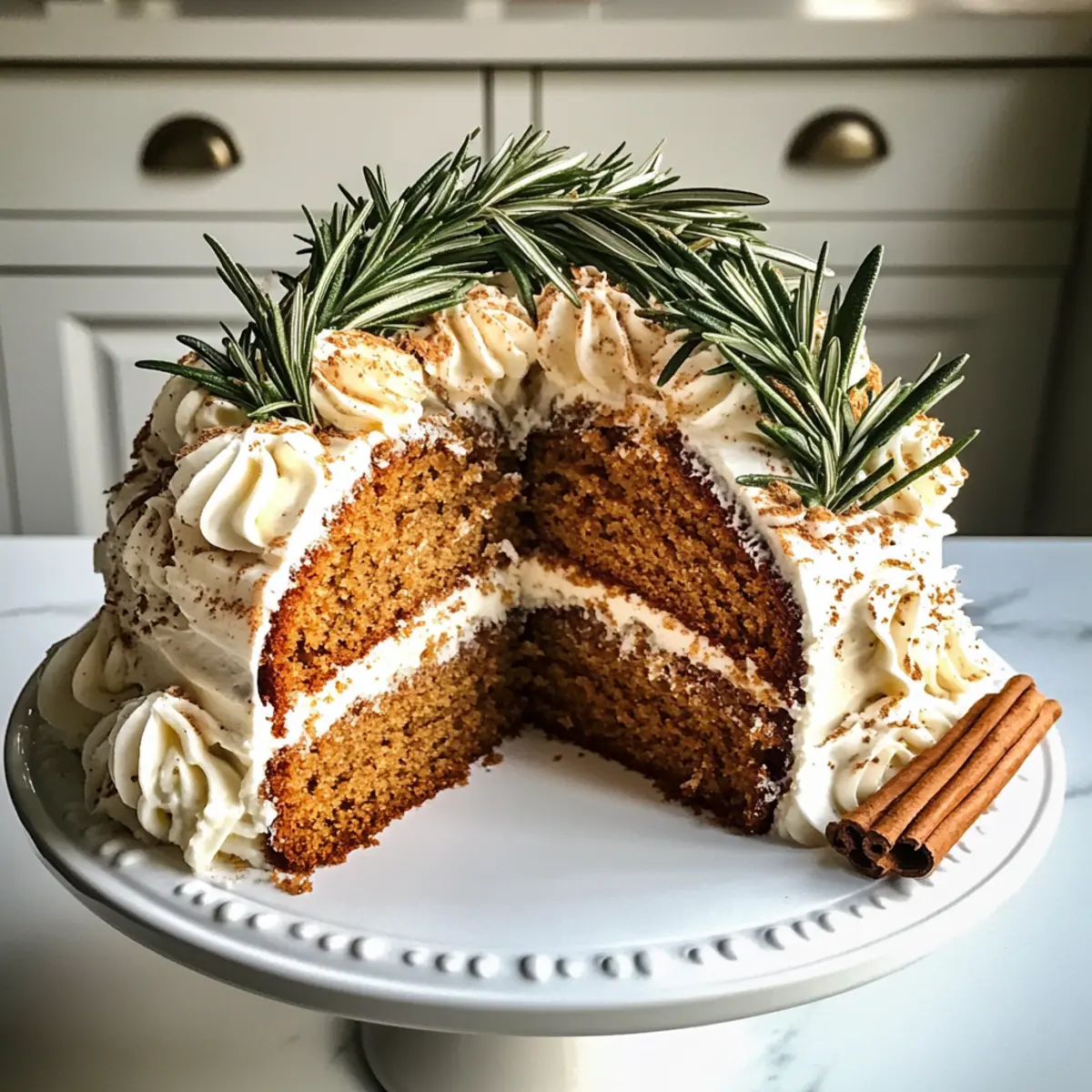 Once frosted, it’s time to make your cake visually stunning! Using fresh rosemary sprigs, star anise, and cinnamon sticks, artfully decorate the top to resemble a beautiful holiday wreath. Arrange these garnishes to create a festive touch that elevates your cake’s appearance, adding charm and appeal to your holiday gatherings.
