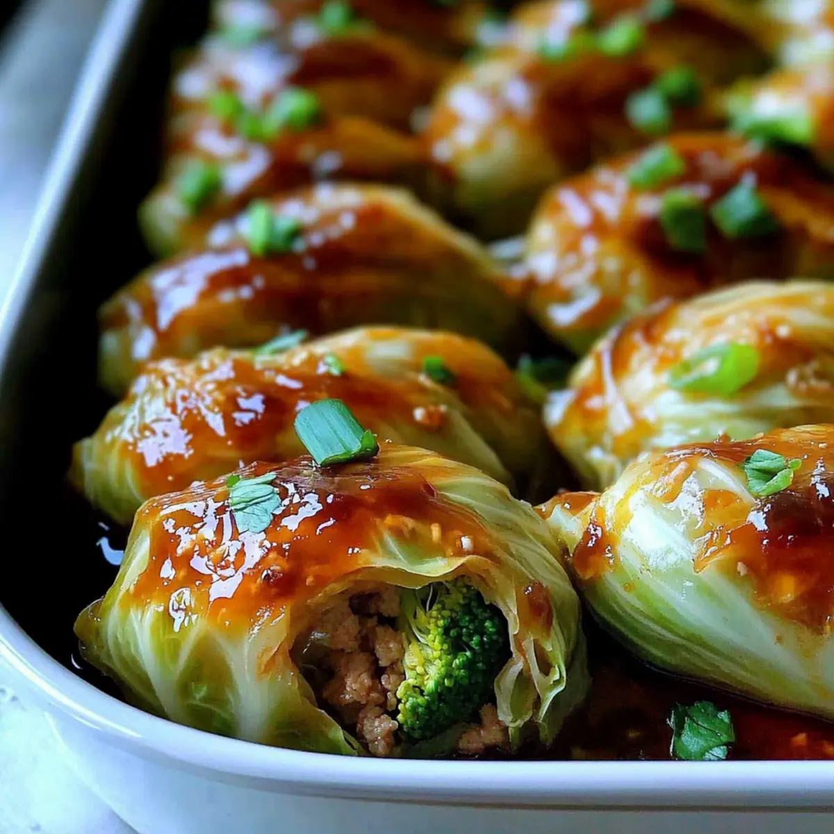 Flavor-Packed Delight: Each bite of these Spicy Asian Pork Cabbage Rolls is a burst of savory goodness, blending the richness of pork with zesty ginger and garlic.