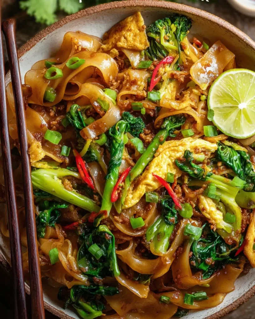 A delicious and easy recipe for Pad See Ew, a popular Thai stir-fried rice noodle dish.