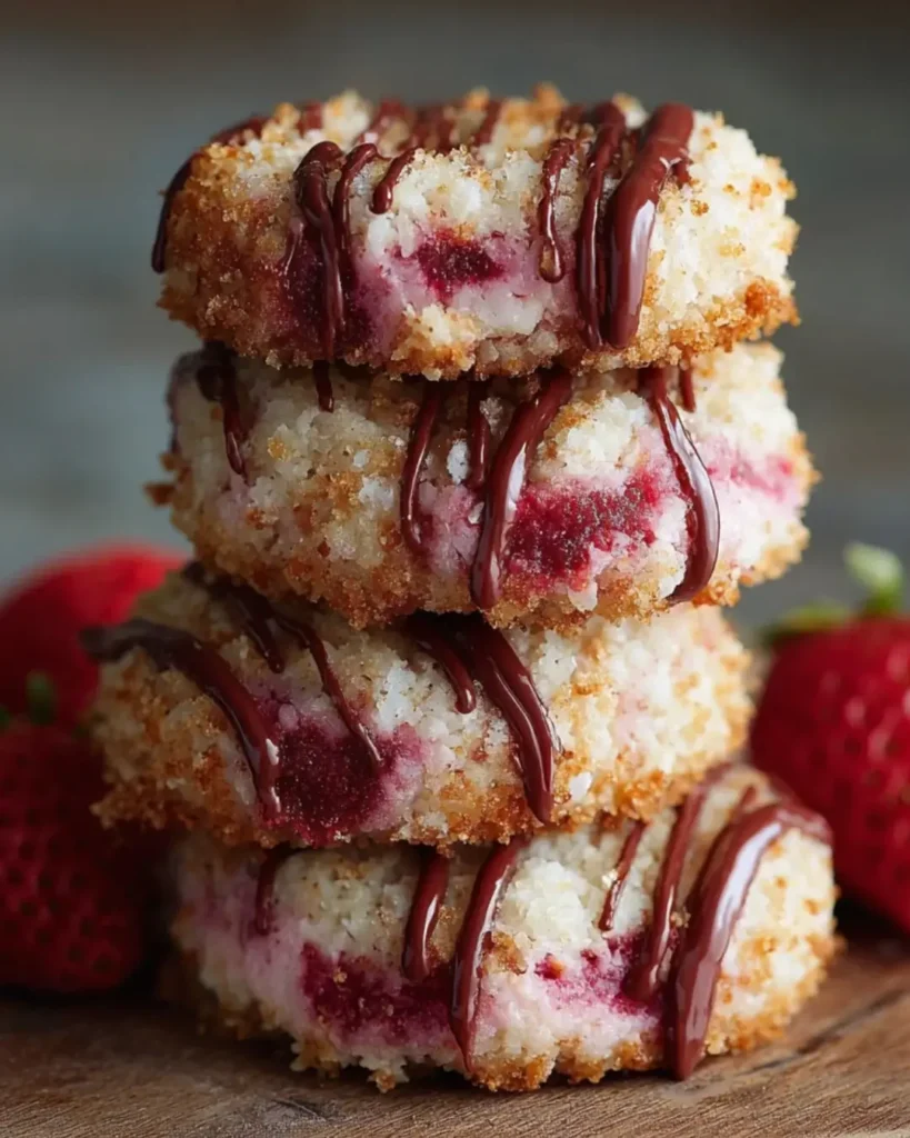 Once your cookies are formed, it’s time for the finishing touch. Melt the white chocolate chips in a microwave-safe bowl, stirring every 30 seconds until smooth. Drizzle the melted chocolate over each cookie. This adds a sweet, creamy layer that perfectly complements the strawberry flavor. It’s like the cherry on top, but better!