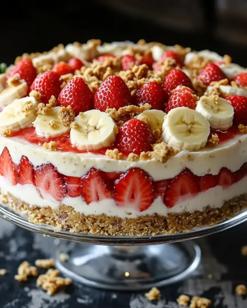 Creating the Strawberry Crunch Banana Pudding Cheesecake is more than just baking; it’s about crafting memories. Each layer tells a story, from the crunchy crust to the creamy filling, and the vibrant strawberries that dance on top. This dessert brings joy not only to your taste buds but also to the hearts of those you share it with. Whether it’s a family gathering or a casual weeknight treat, this cheesecake is sure to impress. So, roll up your sleeves, gather your ingredients, and let the magic unfold in your kitchen. You won’t regret it!