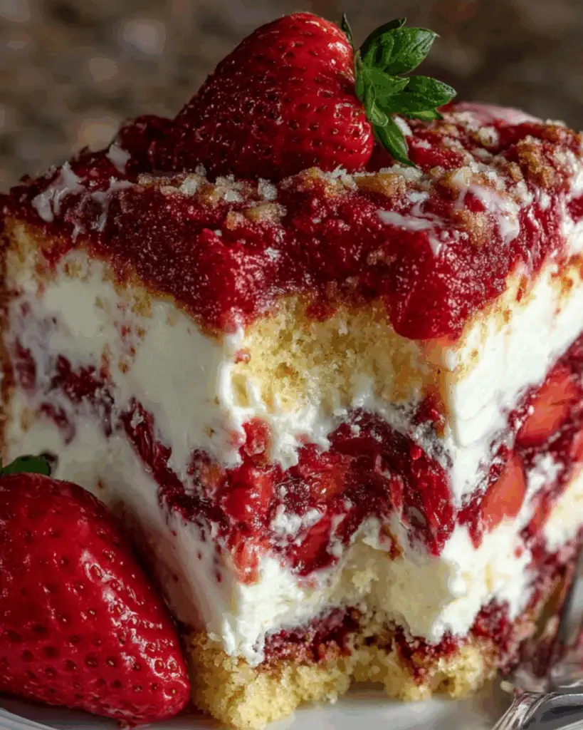 This Strawberry Earthquake Cake is a game-changer for dessert lovers. It’s incredibly easy to whip up, making it perfect for those hectic weeknights or last-minute gatherings. The combination of fresh strawberries, creamy filling, and a hint of coconut creates a flavor explosion that will have everyone asking for seconds. Plus, it’s a one-pan wonder, so cleanup is a breeze. Who doesn’t love a delicious dessert that’s quick and hassle-free?