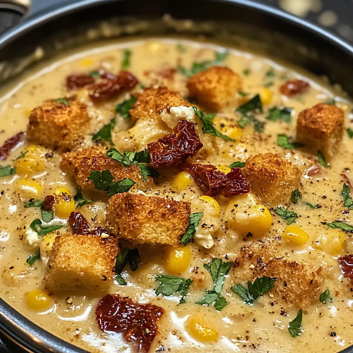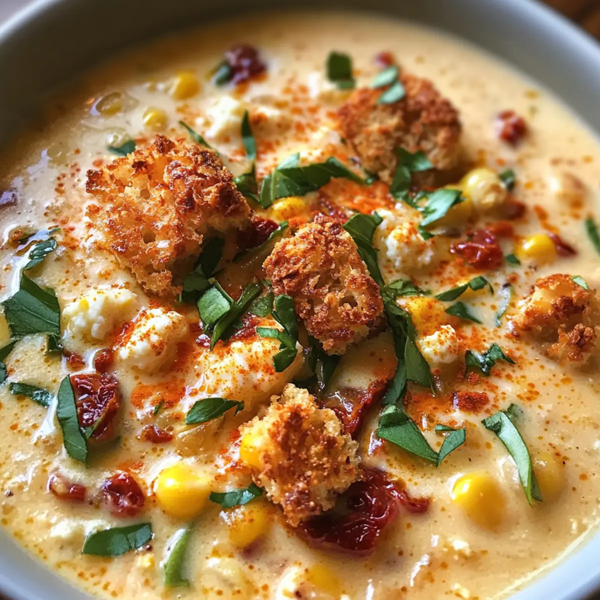 Unforgettable flavor: The combination of sun-dried tomatoes and sweet corn creates an explosion of taste that warms your heart. Quick and easy: This chowder can be on the table in under 30 minutes, perfect for those busy nights when you want something homemade. Versatile options: Whether you’re vegan or gluten-free, this dish can easily adapt to fit your dietary needs. Elegant touch: The crispy goat cheese croutons elevate the dish, making it not only satisfying but visually stunning for dinner guests. For an even cozier meal, try serving it with freshly baked bread or pair it with a light side salad like this delicious Clam Chowder Comfort.
