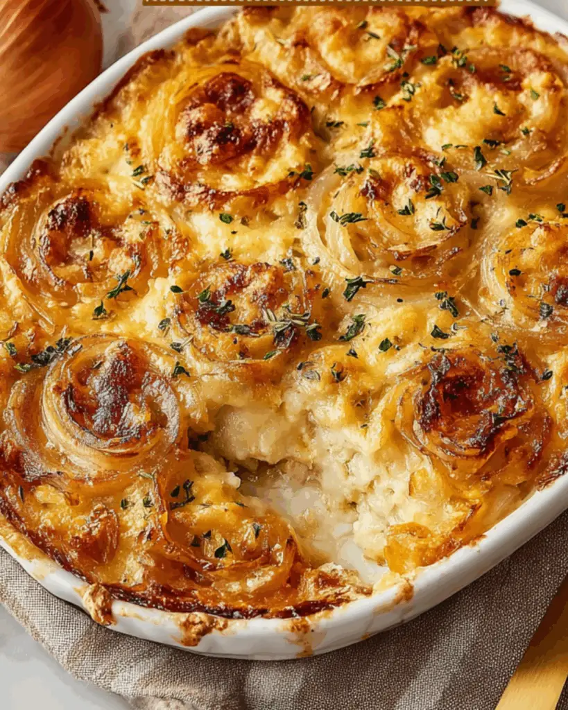 Finally, pop the dish into your preheated oven and bake for 30-35 minutes. Keep an eye on it! You’ll know it’s done when the onions are tender and the top is golden brown. Let it cool for a few minutes before serving. The aroma will have everyone gathering around the table, eager to dig in!