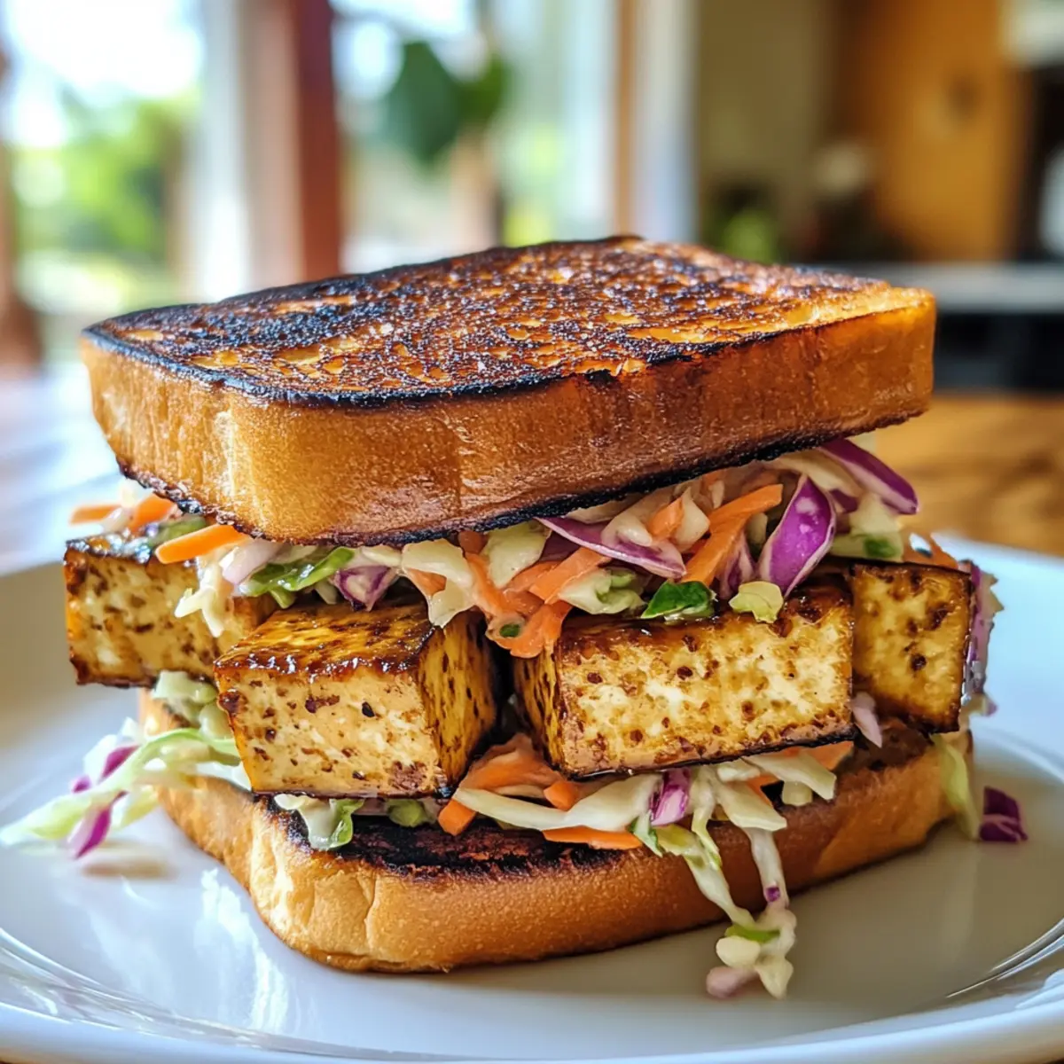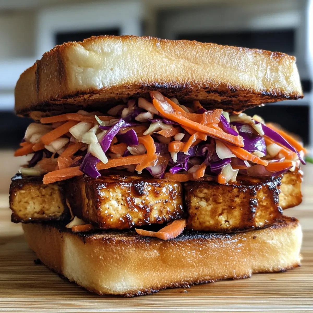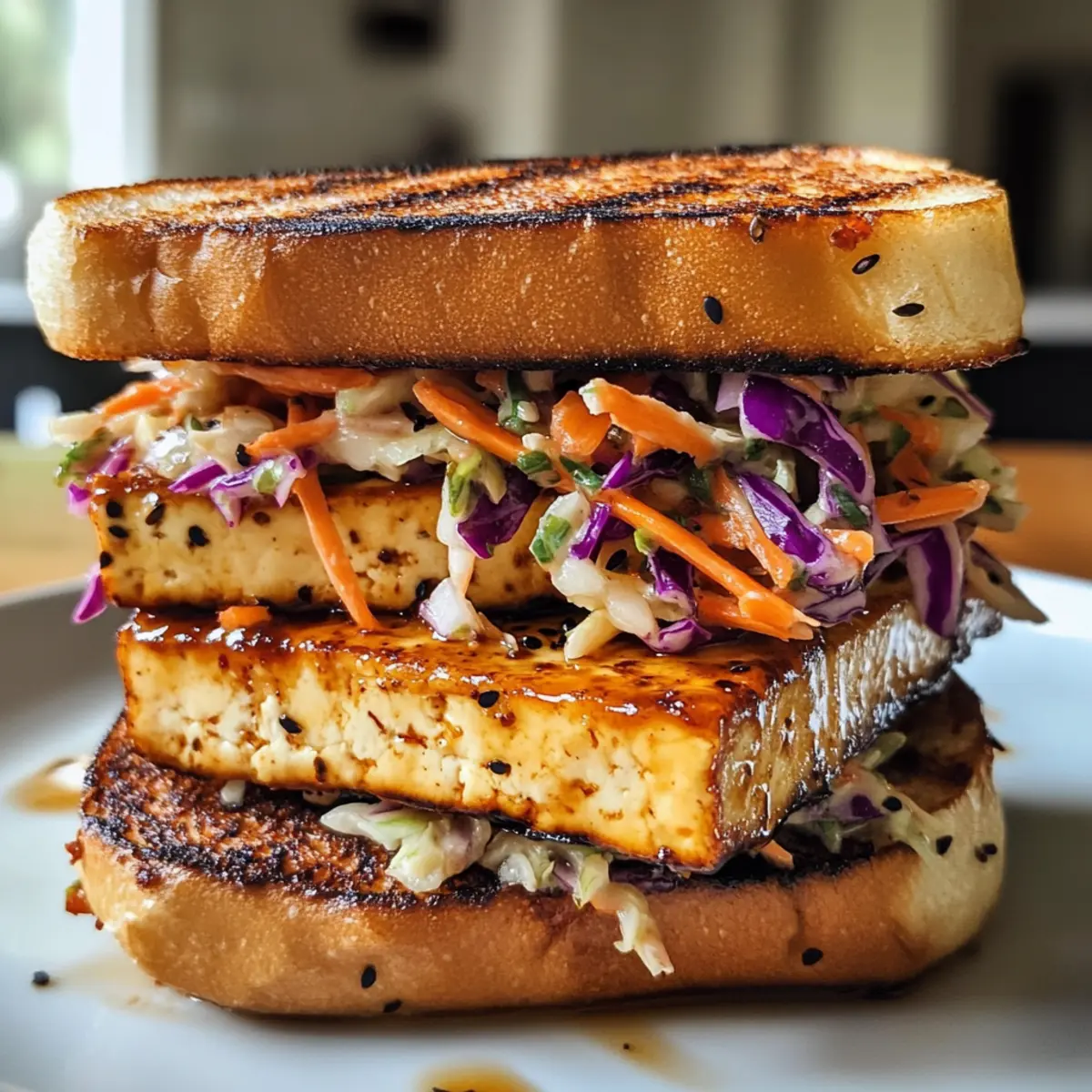 Savory Teriyaki Tofu Sandwich with Zesty Slaw Delight
