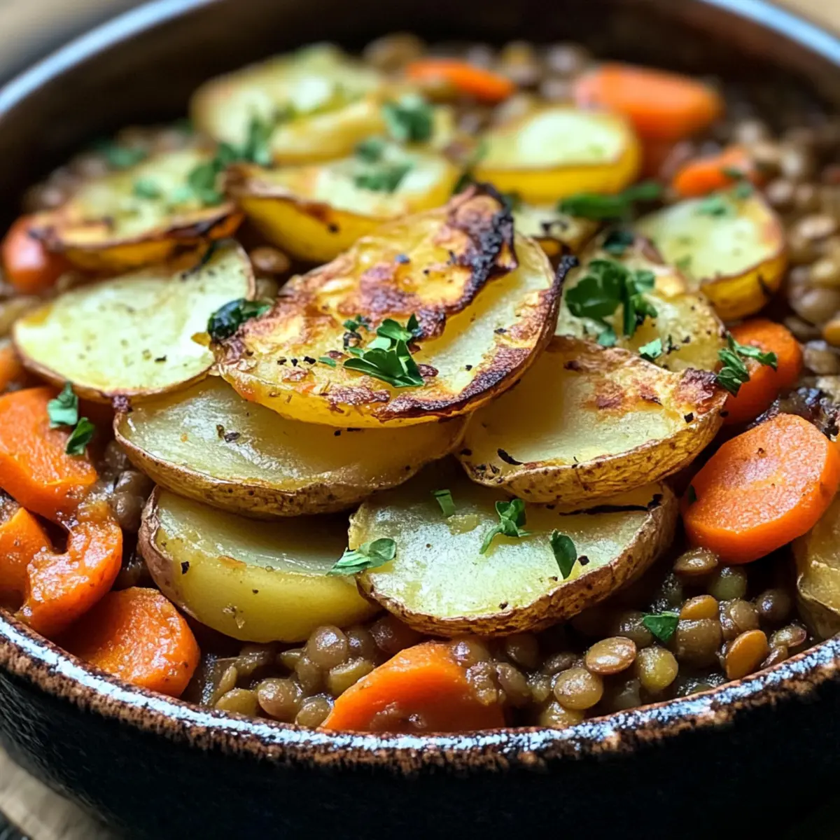 As I stirred the pot, the aromatic blend of sautéed onions and garlic filled my kitchen, immediately wrapping me in a comforting embrace. This Hearty Vegan Lentil Hotpot with Crispy Potatoes is not just a meal; it’s a celebration of plant-based goodness that honors traditional flavors while bringing a delightful twist. Packed with protein-rich lentils and crowned with beautifully baked potatoes, it promises a satisfying, hearty dish that your family will love. Beyond the deliciousness, this recipe is a breeze to whip up, ready in just over an hour, making it the ideal choice for busy weeknights. Ready to transform your dinner routine while treating yourself to a guilt-free indulgence? Let’s dive into this comforting bowl of goodness!