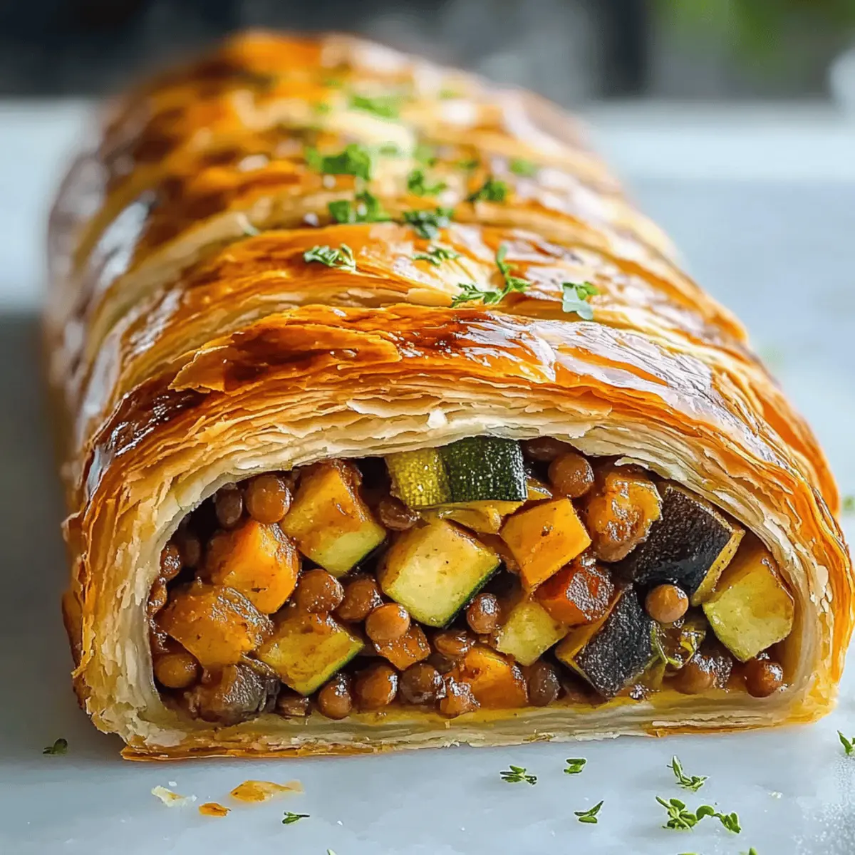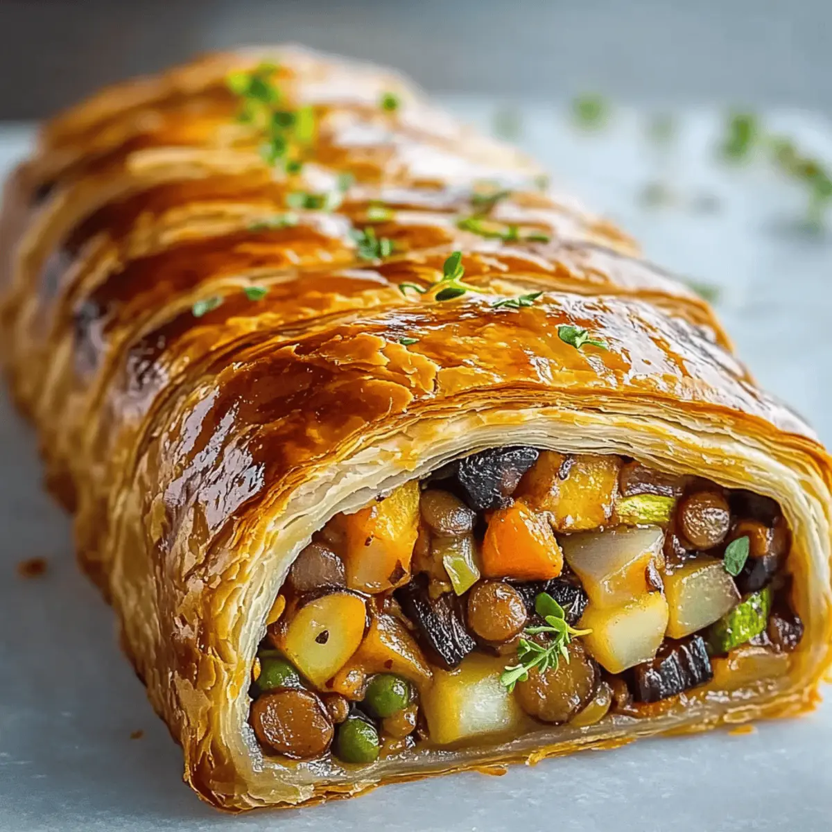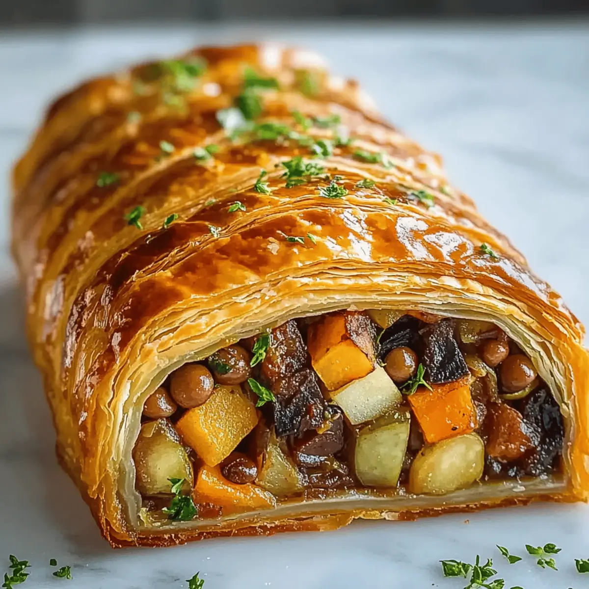 Deliciously Unique: This Vegetable Wellington stands out as a vibrant centerpiece, combining colors and flavors that tease the taste buds.