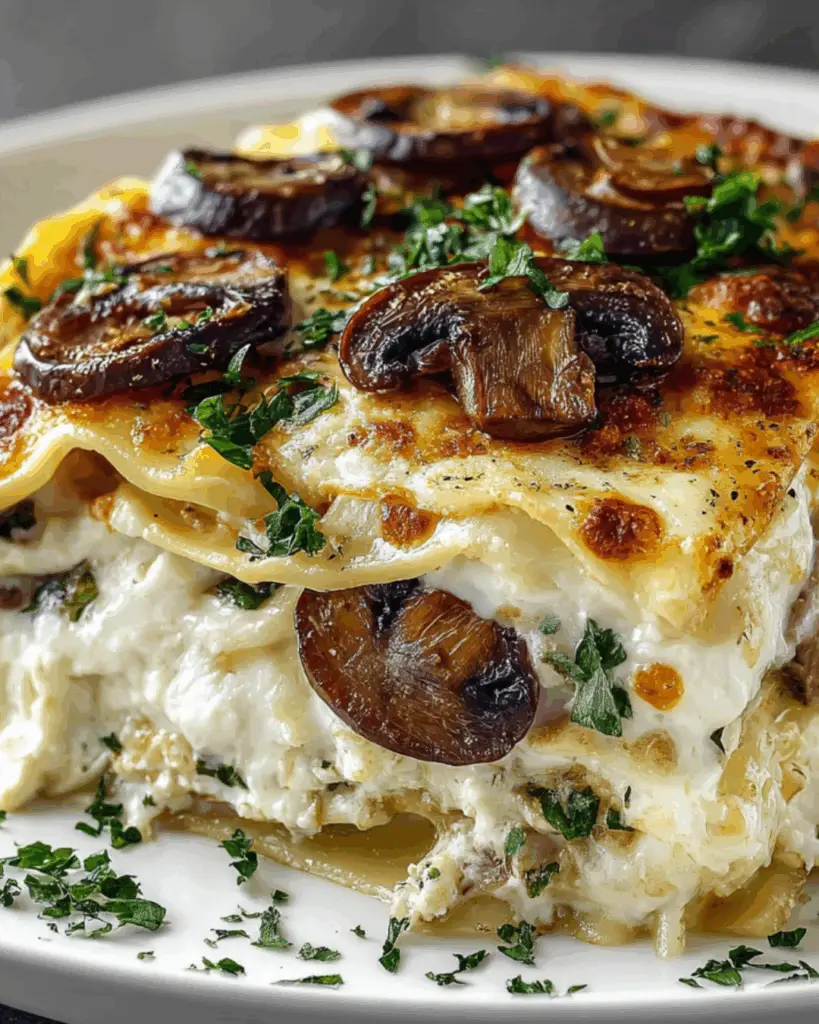 Creating this White Mushroom Lasagna is more than just cooking; it’s about crafting a dish that brings joy to the table. The creamy layers and rich flavors create a comforting experience that warms the soul. Whether you’re sharing it with family on a busy weeknight or impressing friends at a gathering, this lasagna is sure to be a hit. Each bite is a reminder of the simple pleasures in life, making it a recipe you’ll cherish and return to time and again. So roll up your sleeves, and let the magic of this dish unfold in your kitchen!